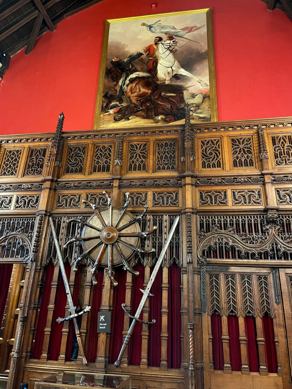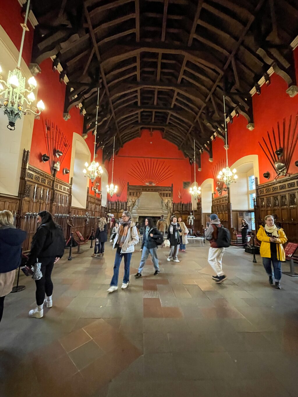 The Great Hall と呼ばれる大広間は、鎧や剣などが壁一面に並べられていて武器庫のよう。